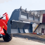 - Ковш оснащён мощным гидравлическим приводом, двумя гидроцилиндрами, а также специальным механизмом открывания ковша. Механизм даёт челюстному ковшу возможность увеличить погрузчику высоту разгрузки в сравнении с обычным ковшом. Улучшенный механизм открывания делает возможным не опрокидывать ковш для разгрузки.