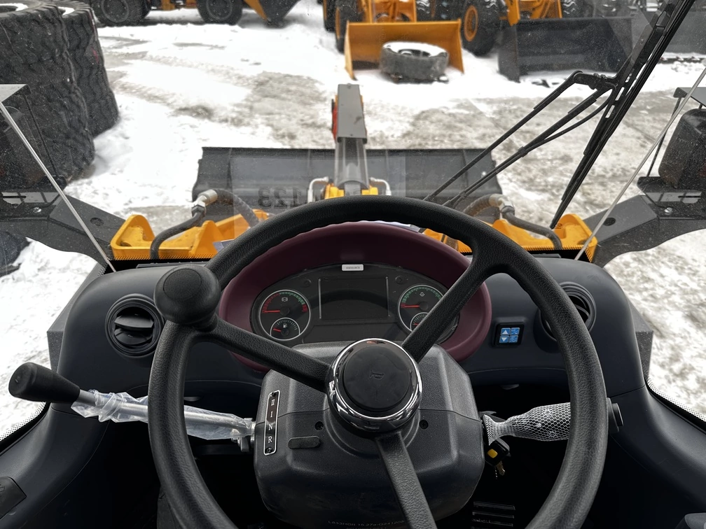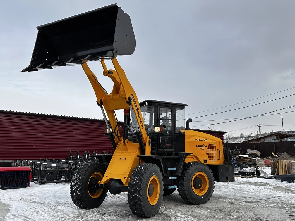 - Удлиненная стрела, высота выгрузки 3.25м, стандартная — 2.93м. Высота по креплению ковша при макс. подъеме 4.044см. Высокая погрузка/выгрузка позволяет загружать любое транспортное средство, осуществлять подачу груза/материала выше, чем погрузчики аналогичного класса.